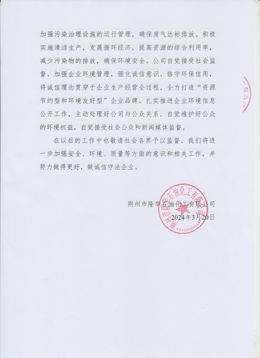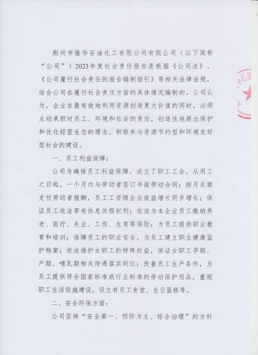 荊州市隆華石油化工有限公司2023年度社會(huì)責(zé)任報(bào)告